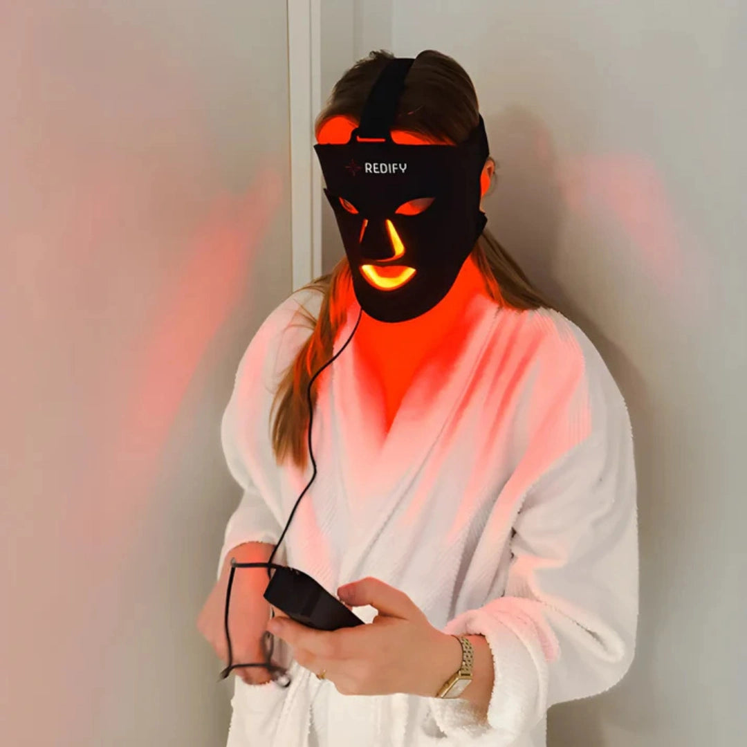 Ta på masken. Det røde og infrarøde lyset trenger dypt ned for å roe betennelser, bekjempe akne-bakterier og støtte hudens naturlige reparasjon.